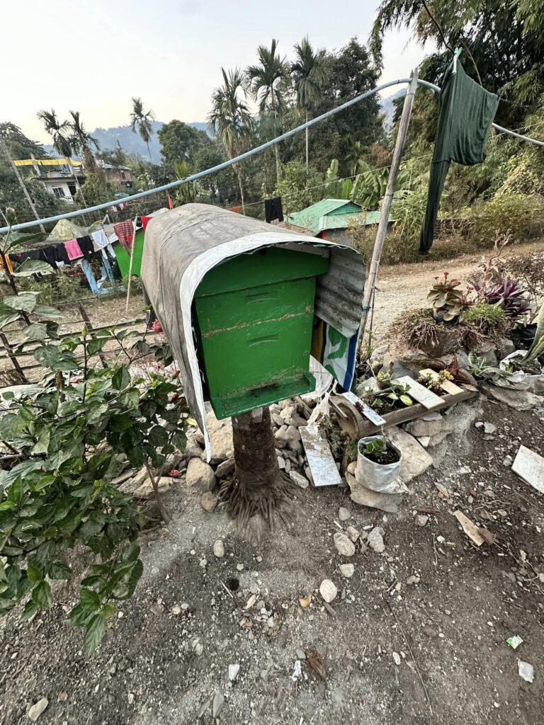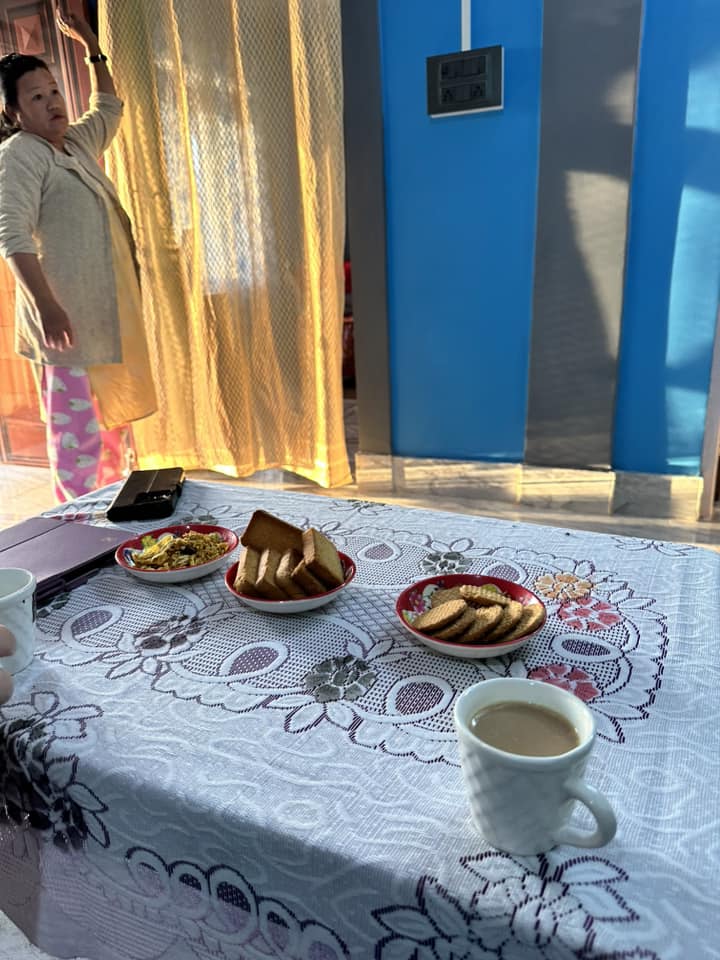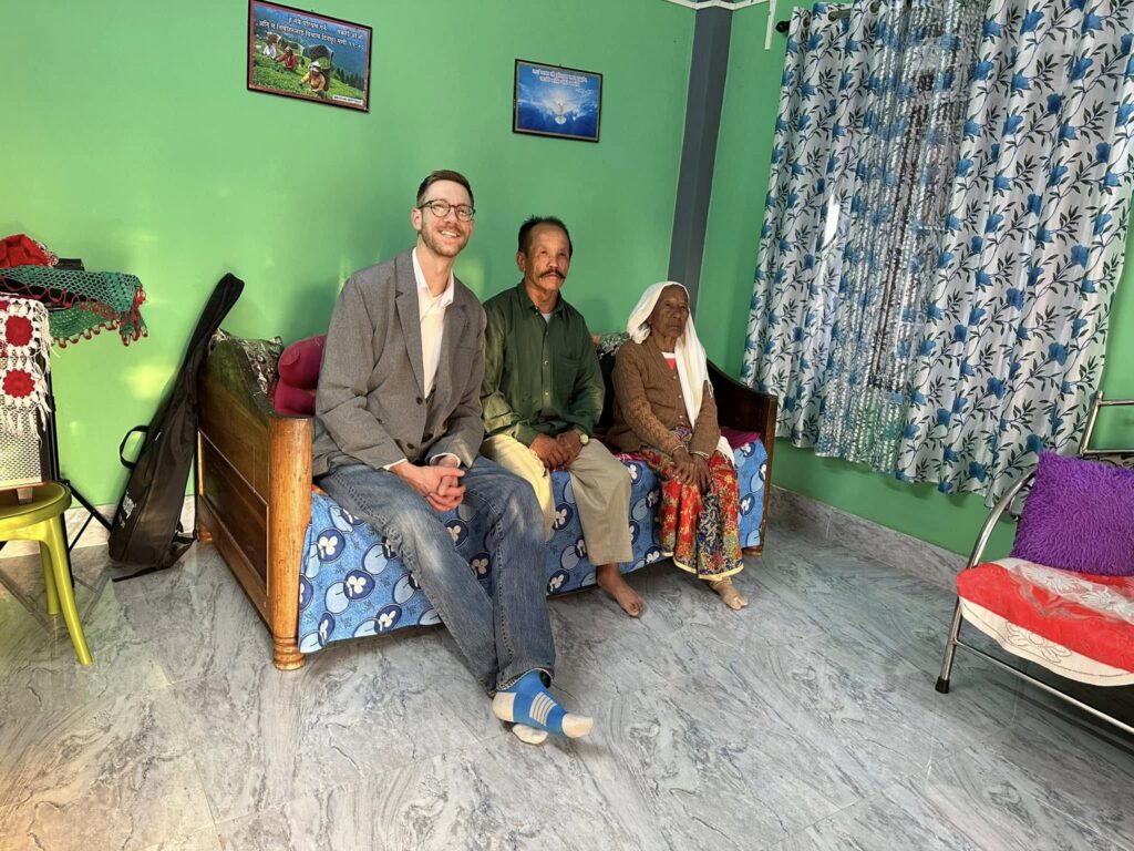 The meal options on the flight from Amsterdam were “Western” or “Indian.” I went for the Indian meal! Not sure what it was, exactly, but it was one of the better in-flight meals I’ve had. I just watched the Indian couple next to me to figure out how to go about eating it! Sachin took us to the foothills of the Himalayas. This scenic overlook shows a public park down below. These bushes immediately in front of me are some form of tea plants, and they are all over many of the hills. You can’t quite see it in this picture, but in the distance is the city of Siliguri. Pastor Sachin says he and his church will sometimes hold prayer services in the night up here, looking out over their city below in prayer—for the well-being of their neighbors, for the health of its citizens, but especially for the gospel to take root and take over.There are 14 villages in these hills of Siliguri, each of them with between 80 to 150 homes, just like these. Technically this area of villages is called Rohini, not Siliguri, but Pastor Sachin’s ministry is not limited to the city.This is the first home we stopped at. Pastor Sachin is in the middle, in the Adidas shirt. The homeowners are the man in the blue shirt, and the woman standing on her porch. we unfortunately did not receive their names.Inside their home, they served us. This cup of tea was made from tea leaves they had picked, and milk from their goat. And it was tasty!Two neighbors and fellow church members joined us. The man beside me was nonverbal, but a very joyful man I could tell (despite him not smiling in this photo I just noticed!). The woman sitting there was 92 years old, and can often be found teaching and telling people the gospel. Also, if you notice the guitar beside me, this home serves as the church building for this village, and that guitar leads them.The 92-year-old woman owns the land behind the home we were in. Her prayer is for her land to be used to build a new church. The building behind her was the previous church, but it fell out of disuse after a former pastor stopped coming up there, and is now in such disrepair it needs to be demolished. In a culture where temples hold such symbolic relevance, there are unchurched Christians (and those questioning) in this village and others who would be willing to go if only thA beehive. Posting purely for my uncle! (And for general curiosity.)In the next home we visited we were again served by the homeowners. Honey tea and fresh honeycomb, straight from his own bee hives. It was excellent! Back in 2017, the woman was in a coma for weeks, and they were contemplating end of life decisions. The husband (who at the time was a deeply committed Hindu) allowed Pastor Sachin to come and pray over her. After the prayer, her eyes began to move, bringing the husband to tears and completely overturning everything he thought he knew. He is now a Baptized believer and very dedicated to the fellowship of Pastor Sachin’s different churches.At the end of the day, Pastor Sachin invited us into his home for dinner, prepared by his wife, Sri Jana. Chutney, chicken, goat (which they call mutton), potatoes, salad (carrots and cucumbers), topped off with ice cream.