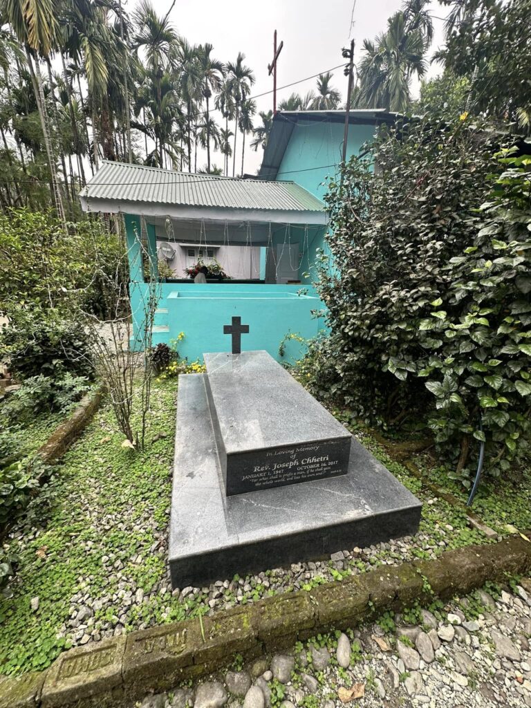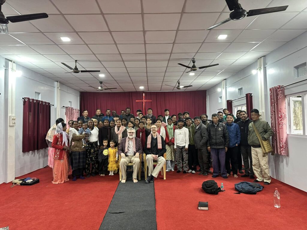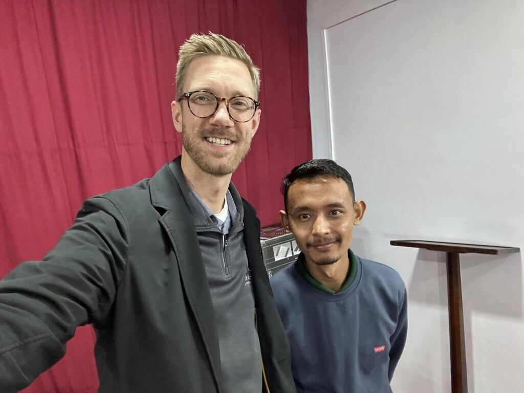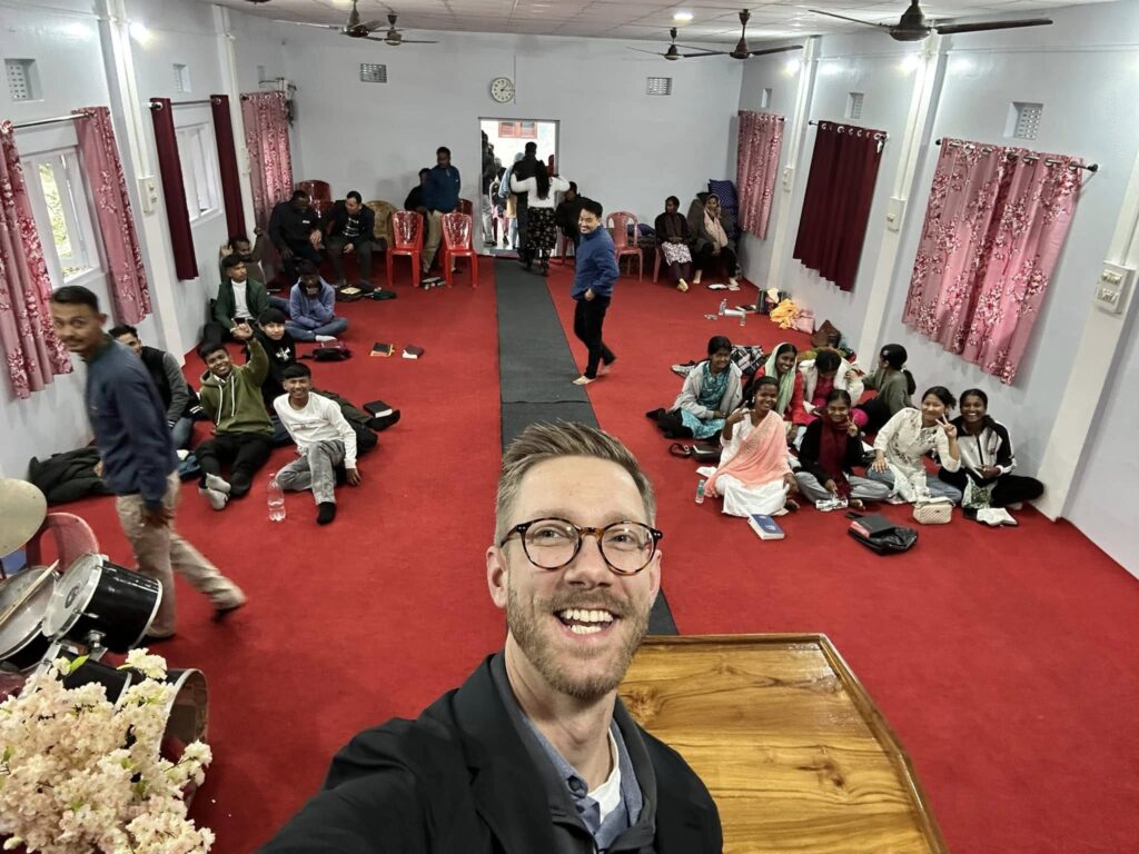 The village road outside Bethel Church.A rooster on the wall greeted us as we arrived.Our breakfast. They asked us the night before if we had any requests for breakfast. We told them to surprise us. Surprise! Some sort of tiny fish with unknown other ingredients, and some naan bread. They then brought along a plate of bread and cheese singles, in case we wanted “a more familiar breakfast,” they told us. Later, unprompted, they brought us fried eggs, too. It was very sweet and generous how they were trying to look out for us and provide.A volunteer sitting a warming pot over a fire, working on lunch.More volunteers preparing for lunch, slicing vegetables.The actual church building, with a few Christmas decorations still hung.Bethel was founded by Pastor Joseph Chhetri and his wife who were the only Christians in the area. Through dedicated ministry efforts, Joseph was able to plant one church after another. He ended up planting seven churches in the area, which caught the attention of local Hindu leaders. In 2017, Joseph was hit by a truck and killed; the driver fled the scene and was never found. In the pastor’s desk, his family found a number of death threat letters he had kept from them. They believe his death was no accident, and that he was martyred. He is buried near the entrance to Bethel Church.Inside the sanctuary. Looks like we beat the crowd!Opening time for singing and prayer as attendees arrive.A selfie with my translator.After the previous selfie, he said I was going to make some of the others jealous. So I turned and snapped one of those remaining in the room, getting a bunch of giggles.Those in attendance.This dog ran all over the church property. It reminded me of one of my dogs at home, especially as it begged at the lunch table. I had to snap a photo.