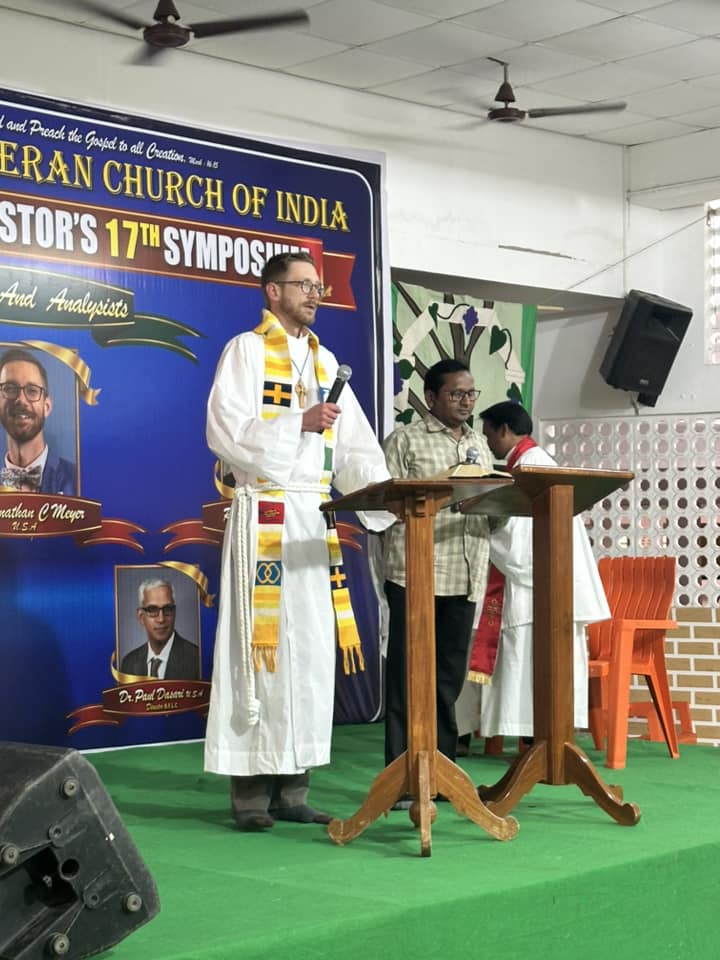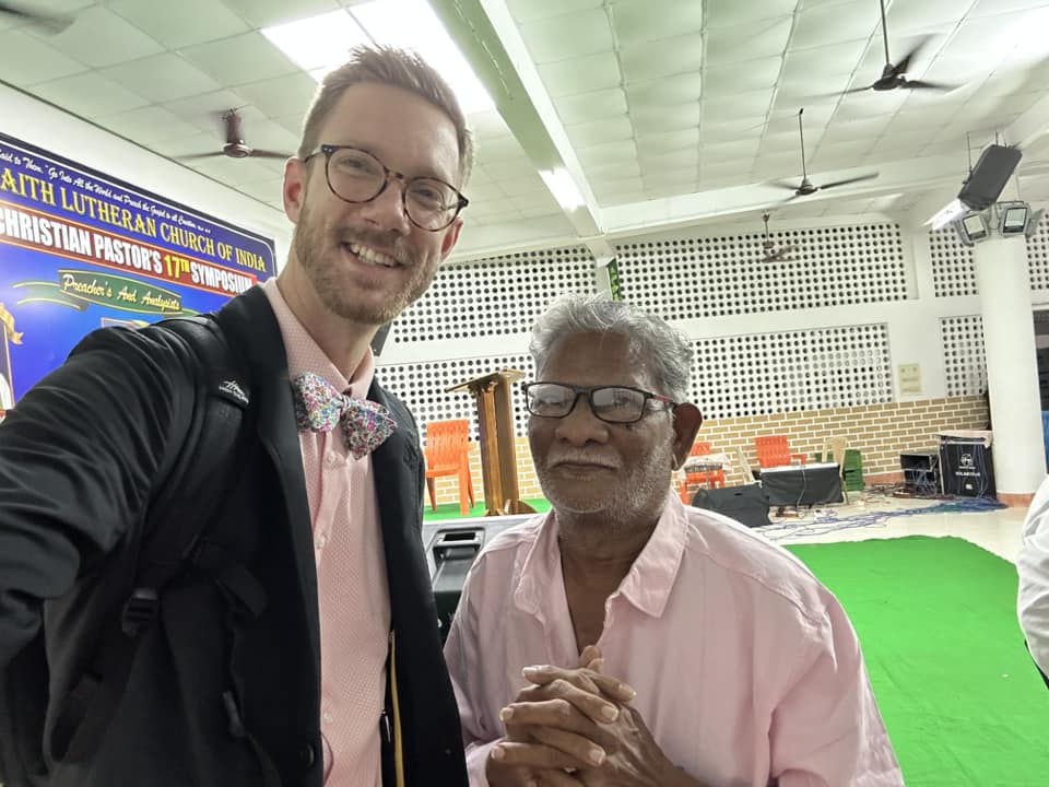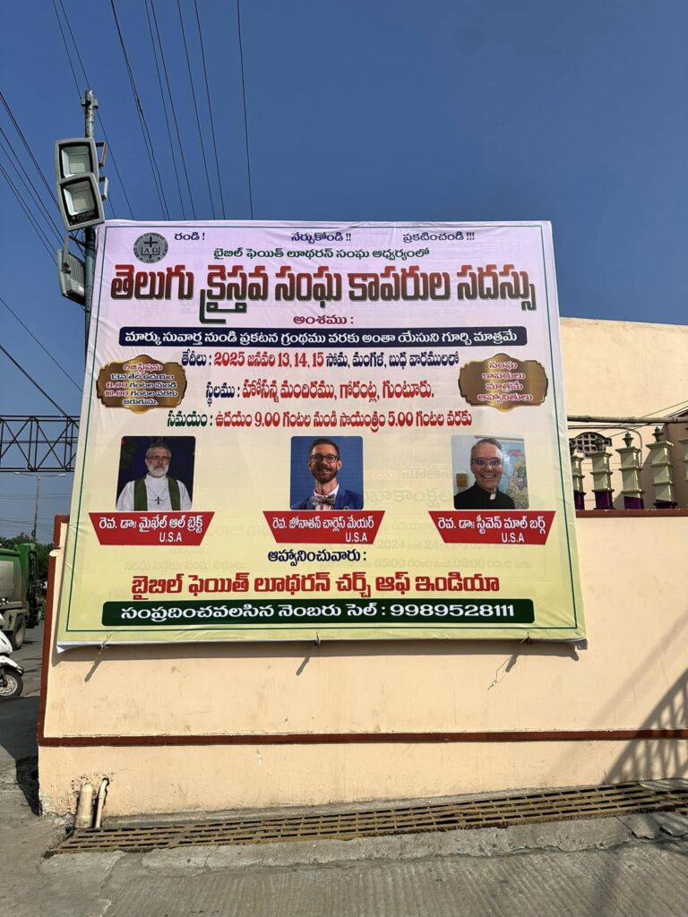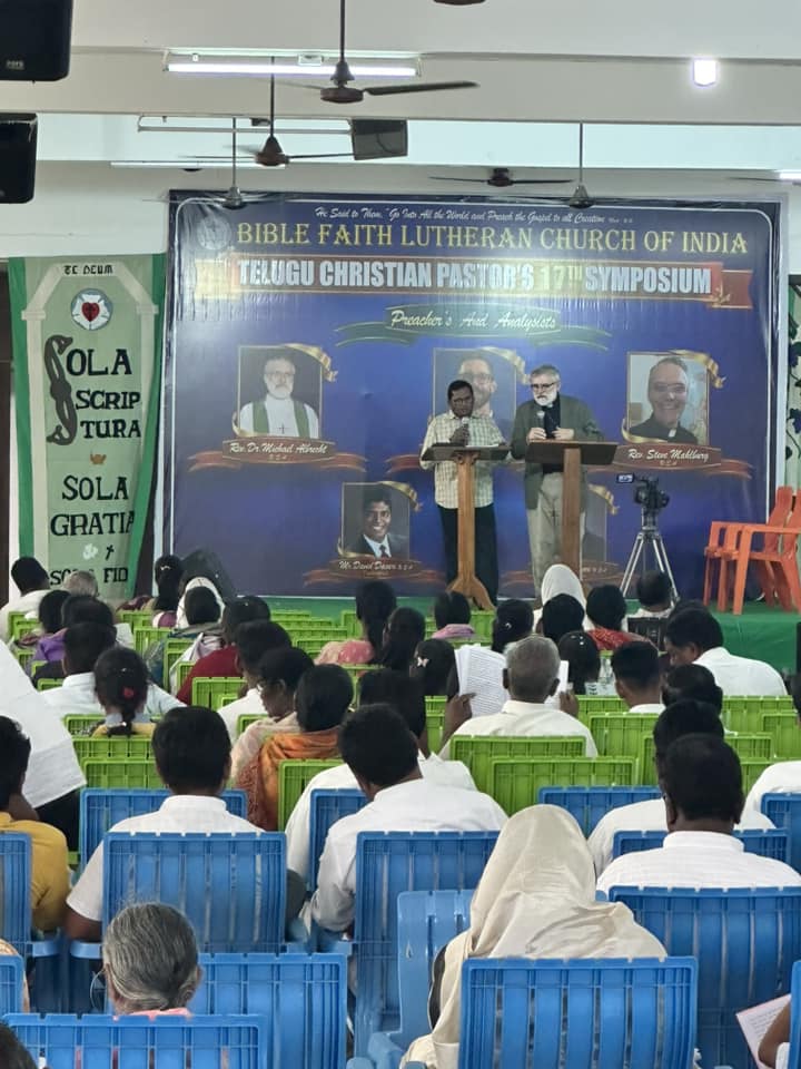 “On Bhogi, people discard old and derelict things and concentrate on new things causing change or transformation. At dawn, people light bonfires with logs of wood, other solid-fuels, and wooden furniture at home that are no longer useful. This marks the end of the year’s accounts and the beginning of new accounts on the first day of the harvest on the following day.”More of the sand art outside a home.Here comes the swaami, making music and chanting as he goes.Arriving at the Symposium.The campus where the event is held is the home to a nondenominational organization, Hosanna Ministries International. It is a large space. The blue building is the main worship center where we are speaking.During one of the sessions.The dining hall at lunch time.Another session begins.Preaching at Vespers.A little girl named Pravalika. She’s a sweet little kindergartener.A new friend named Prakumar—he’s in first grade, like my daughter.Another sweet little child of God.My new friend David. He is a very joyful man! We prayed for his health and strength.What may be the birth of a seminary. The three men to my right are all professors who have ideas and visions on how to make a good thing better. Praise God for their faithfulness. They have a lot of work ahead of them!